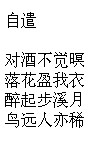 Falling blossoms have filled the folds of my clothes. Drunk, I rise and approach the moon in the stream, Birds are far off, people too are few .